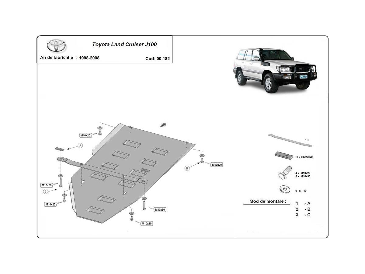Der Stahl-Unterfahrschutz ist auf die originalen Befestigungspunkte abgestimmt und wird mit einem vollständigen Satz aus Blechplatten, Schrauben und Muttern befestigt.