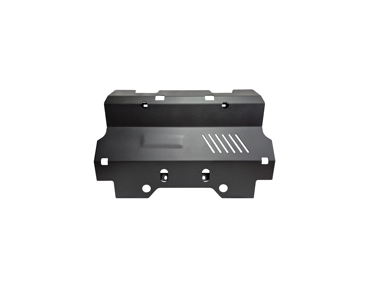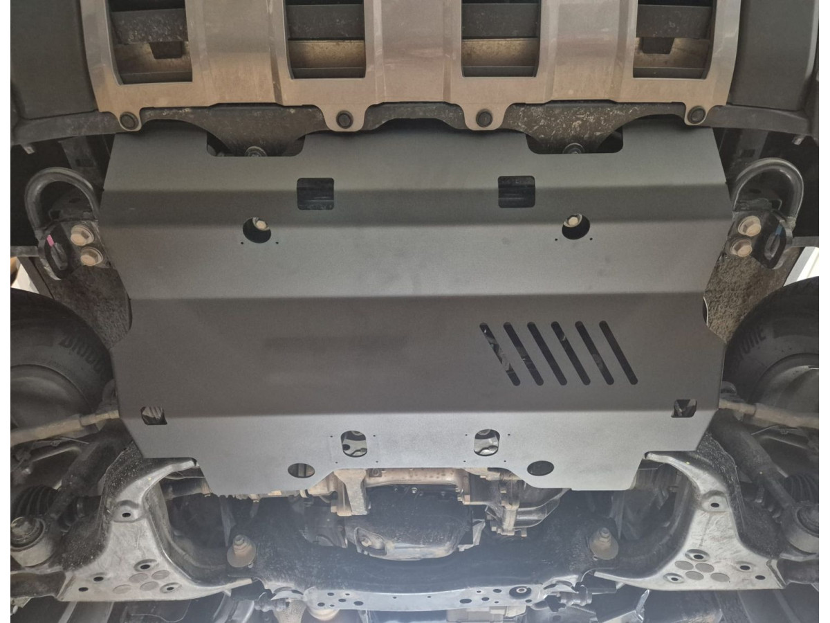 Der Stahl-Unterfahrschutz ist auf die originalen Befestigungspunkte abgestimmt und wird mit einem vollständigen Satz aus Blechplatten, Schrauben und Muttern befestigt.