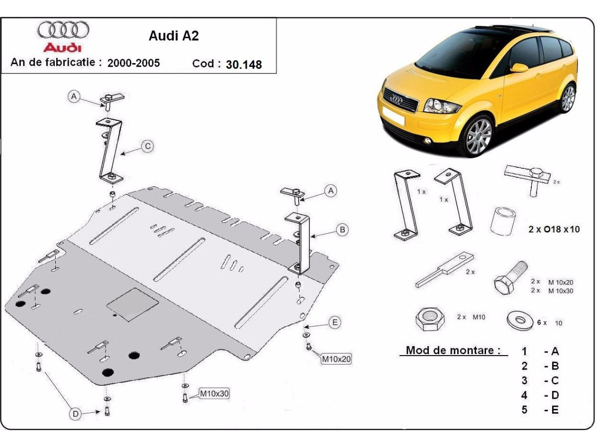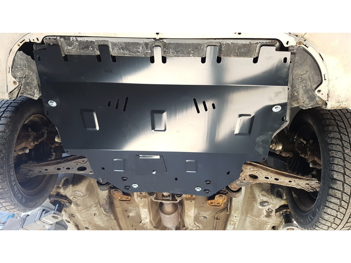 Der Stahl-Unterfahrschutz ist auf die originalen Befestigungspunkte abgestimmt und wird mit einem vollständigen Satz aus Blechplatten, Schrauben und Muttern befestigt.