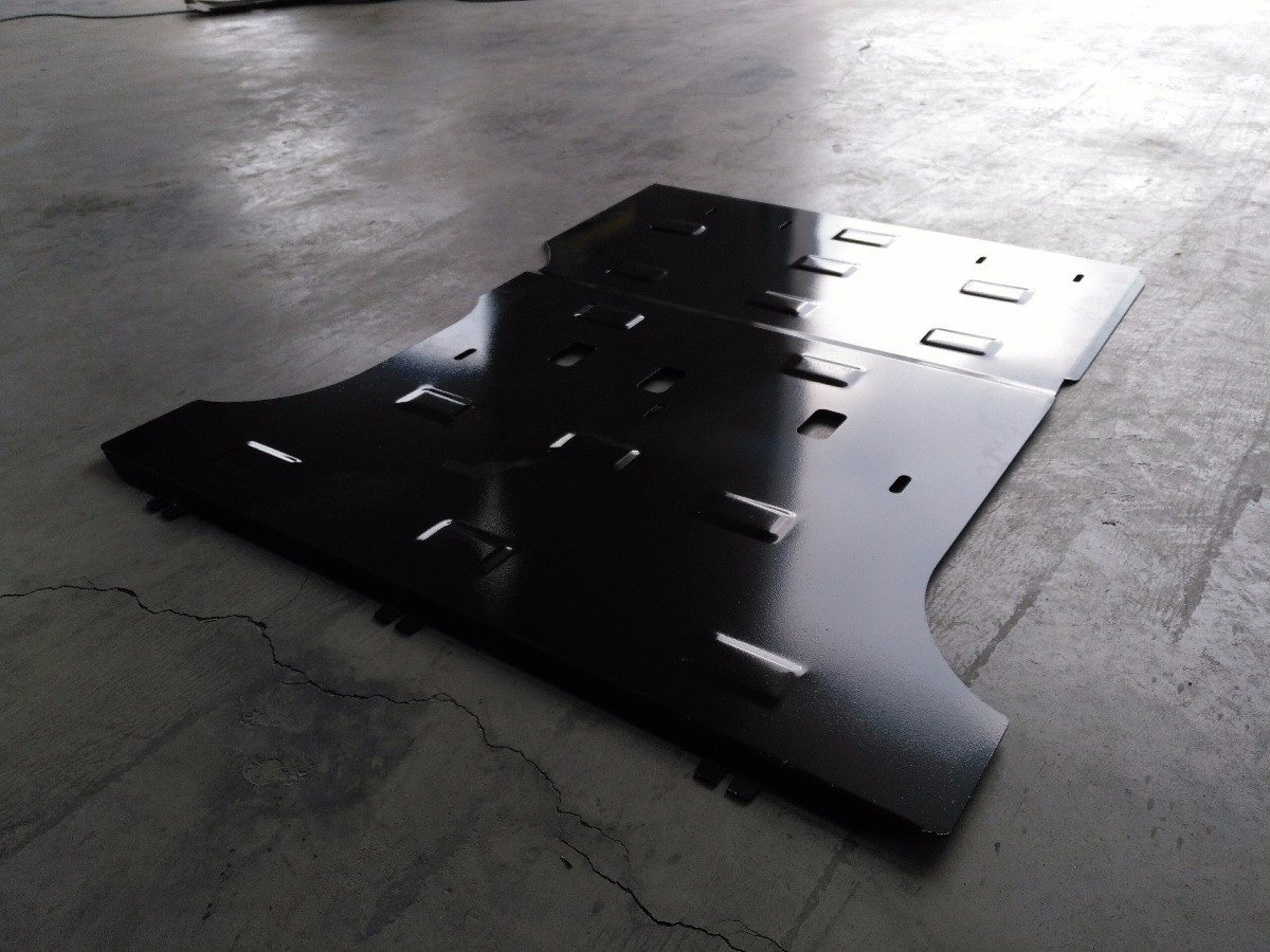Hochwertige Stahlschutze für Motor und andere Komponenten, hergestellt mit modernsten Metallbearbeitungstechnologien.
