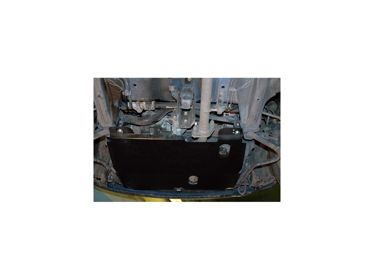 Der Stahl-Unterfahrschutz ist auf die originalen Befestigungspunkte abgestimmt und wird mit einem vollständigen Satz aus Blechplatten, Schrauben und Muttern befestigt.