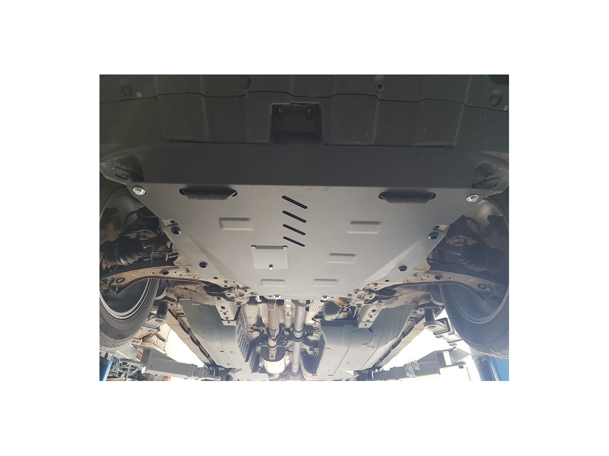 Der Stahl-Unterfahrschutz ist auf die originalen Befestigungspunkte abgestimmt und wird mit einem vollständigen Satz aus Blechplatten, Schrauben und Muttern befestigt.