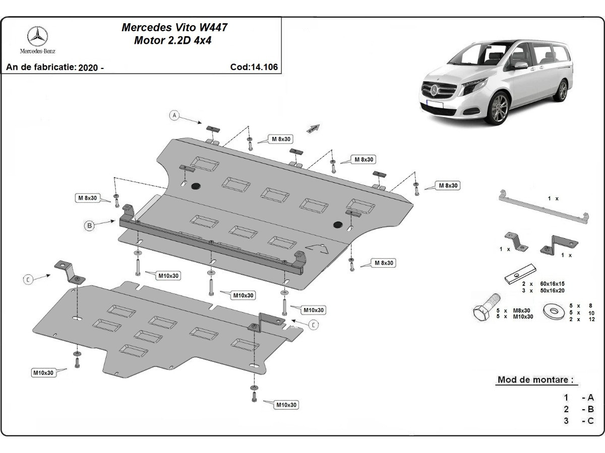Stahl Unterfahrschutz für Motor Mercedes Vito W639 - 2.2 D 4x2 (2003-2014) EAN