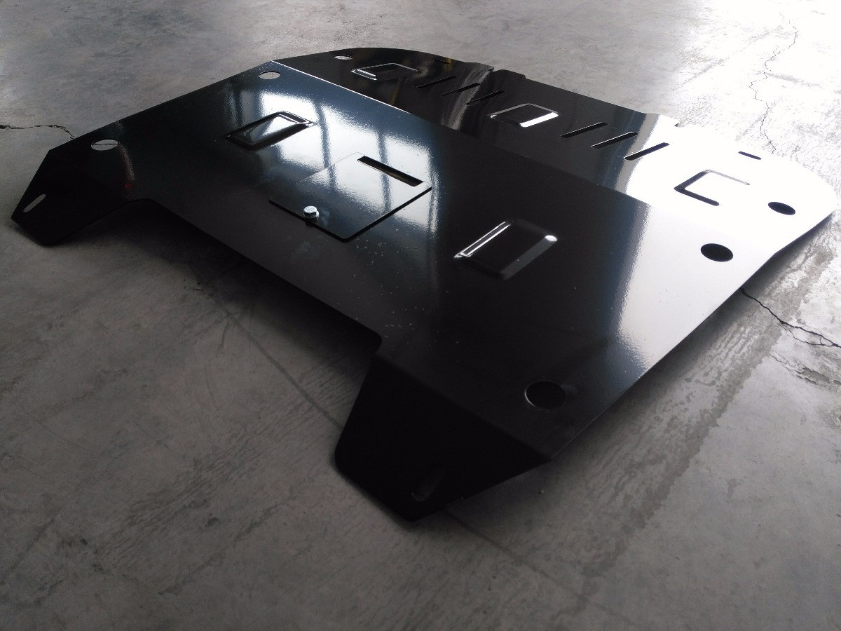 Hochwertige Stahlschutze für Motor und andere Komponenten, hergestellt mit modernsten Metallbearbeitungstechnologien.