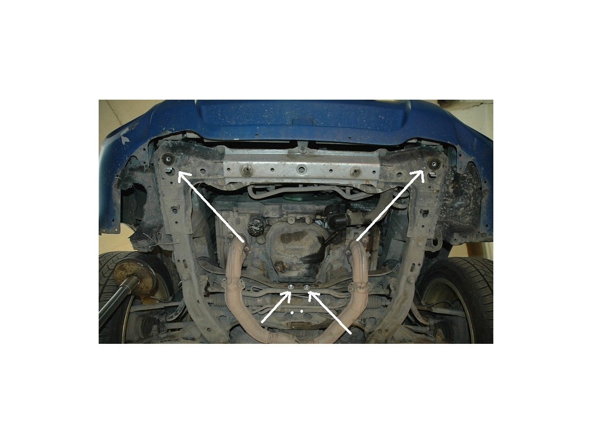 Der Stahl-Unterfahrschutz ist auf die originalen Befestigungspunkte abgestimmt und wird mit einem vollständigen Satz aus Blechplatten, Schrauben und Muttern befestigt.