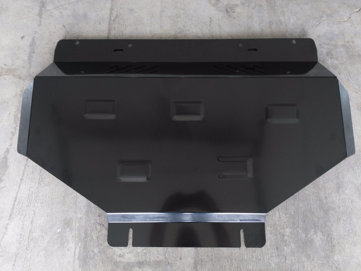Der Stahl-Unterfahrschutz ist auf die originalen Befestigungspunkte abgestimmt und wird mit einem vollständigen Satz aus Blechplatten, Schrauben und Muttern befestigt.