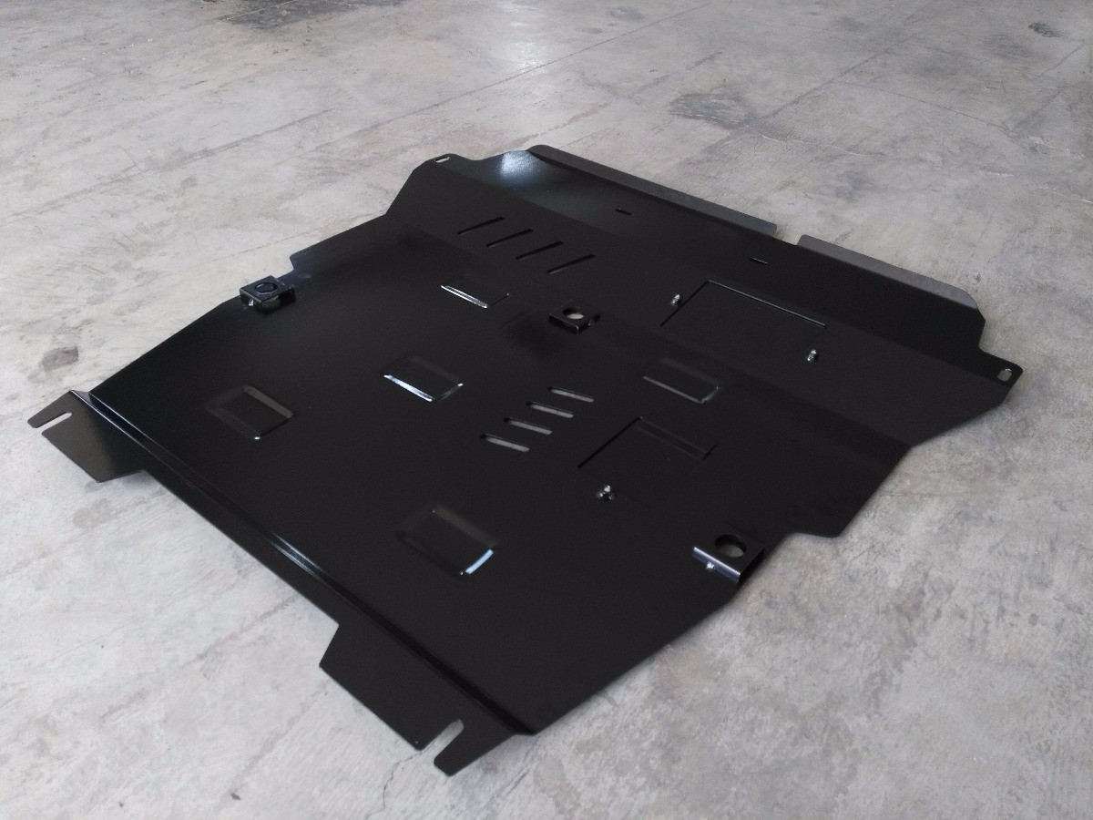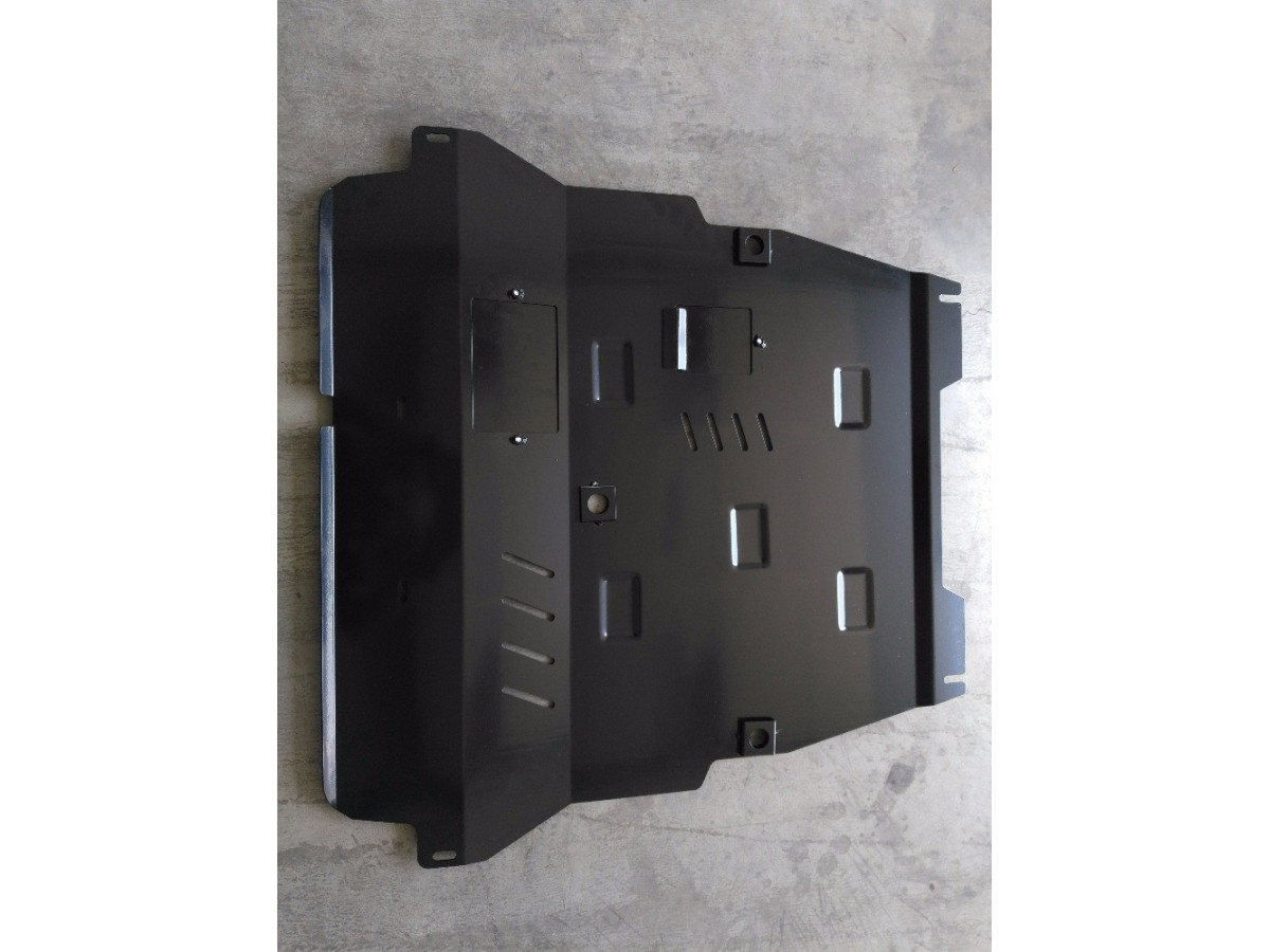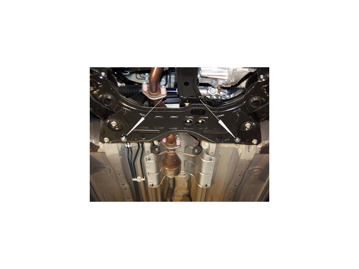Der Stahl-Unterfahrschutz ist auf die originalen Befestigungspunkte abgestimmt und wird mit einem vollständigen Satz aus Blechplatten, Schrauben und Muttern befestigt.