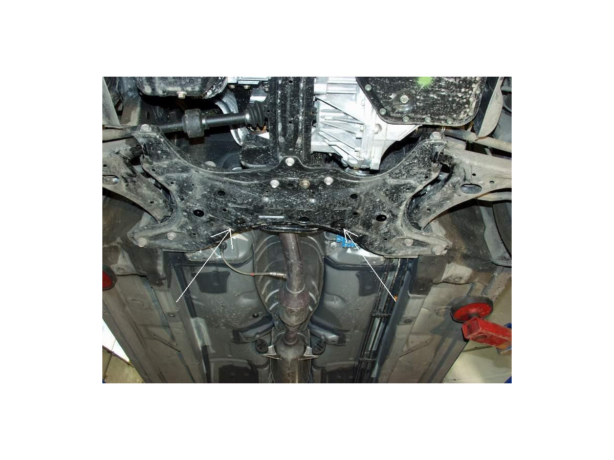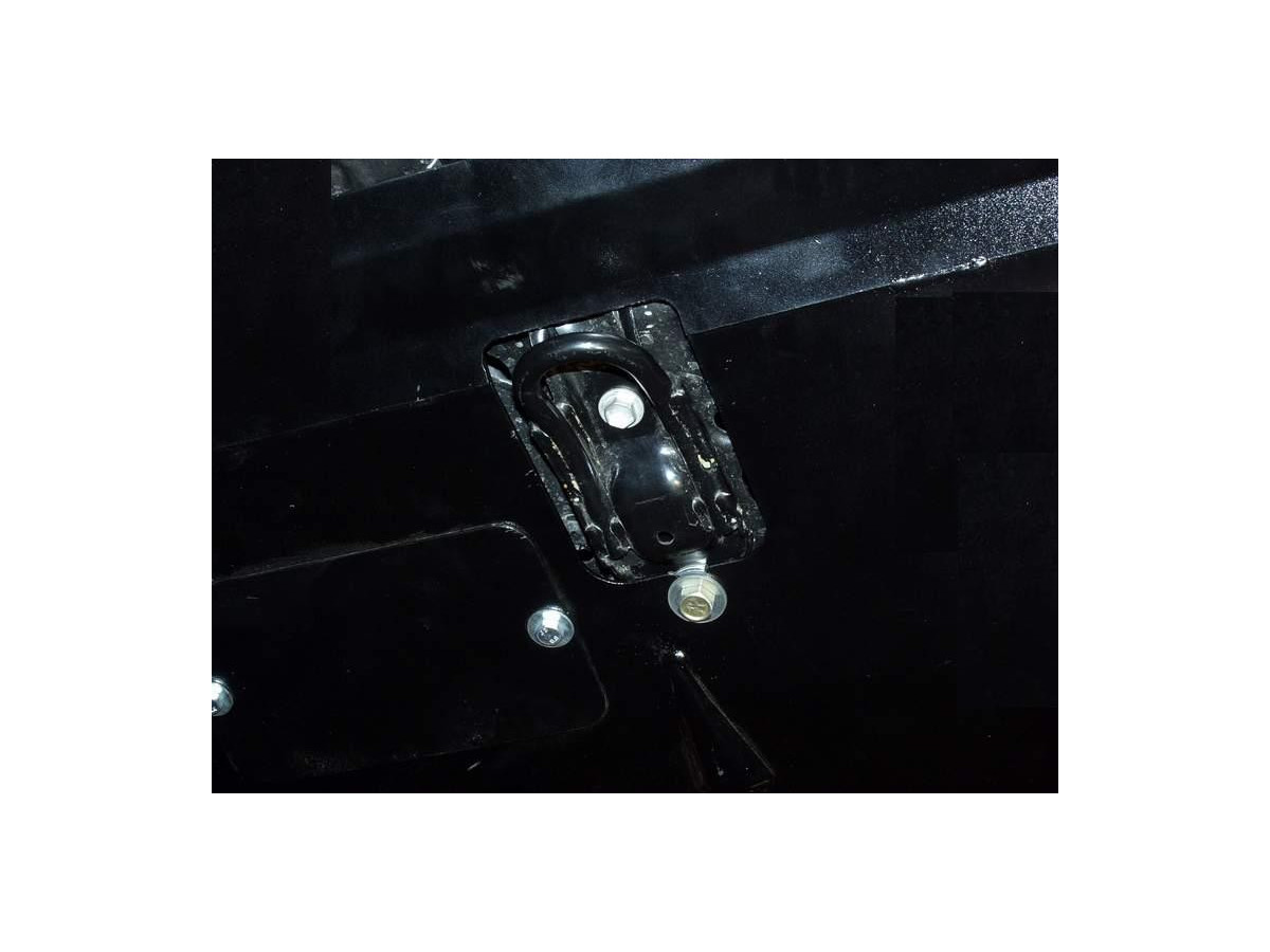 Der Stahl-Unterfahrschutz ist auf die originalen Befestigungspunkte abgestimmt und wird mit einem vollständigen Satz aus Blechplatten, Schrauben und Muttern befestigt.