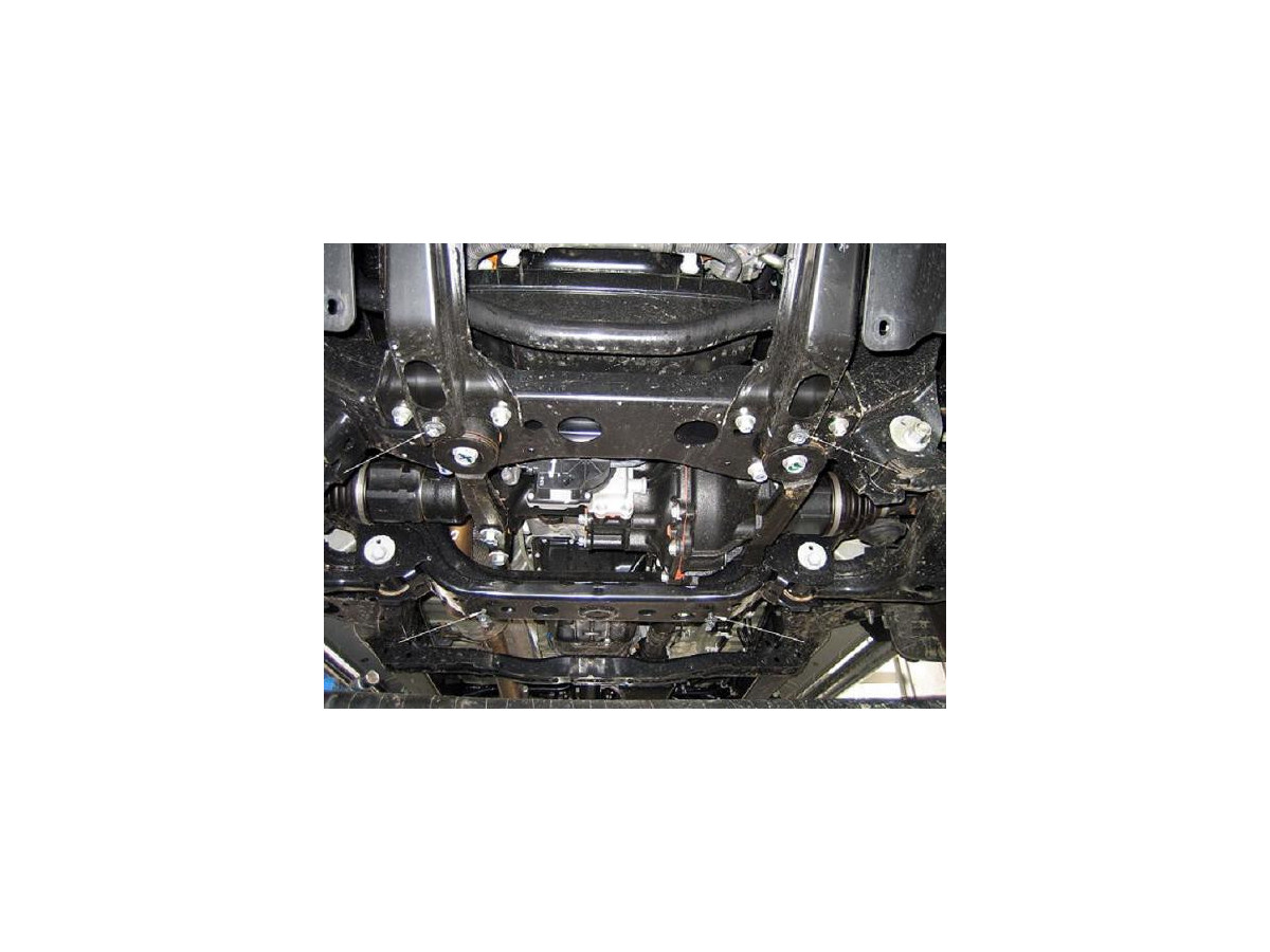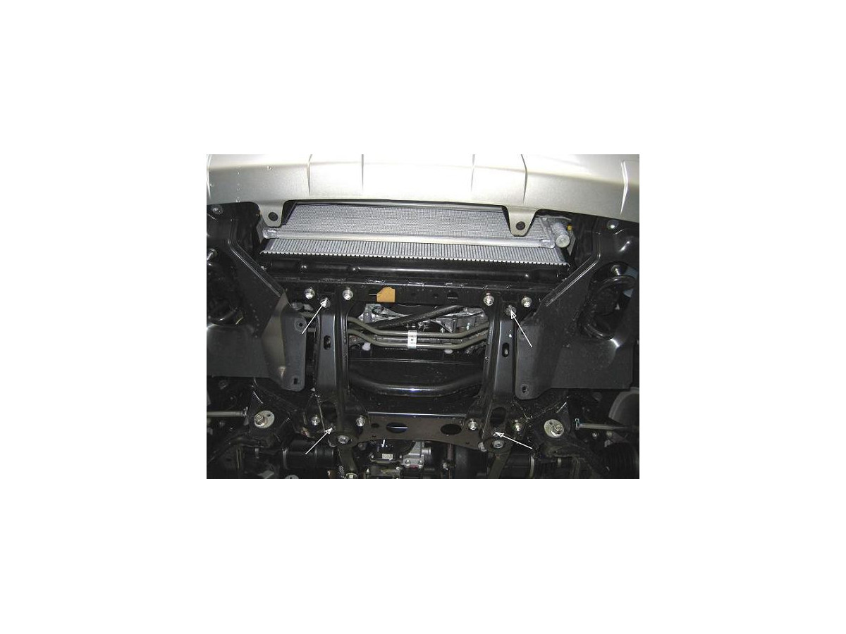 Der Stahl-Unterfahrschutz ist auf die originalen Befestigungspunkte abgestimmt und wird mit einem vollständigen Satz aus Blechplatten, Schrauben und Muttern befestigt.