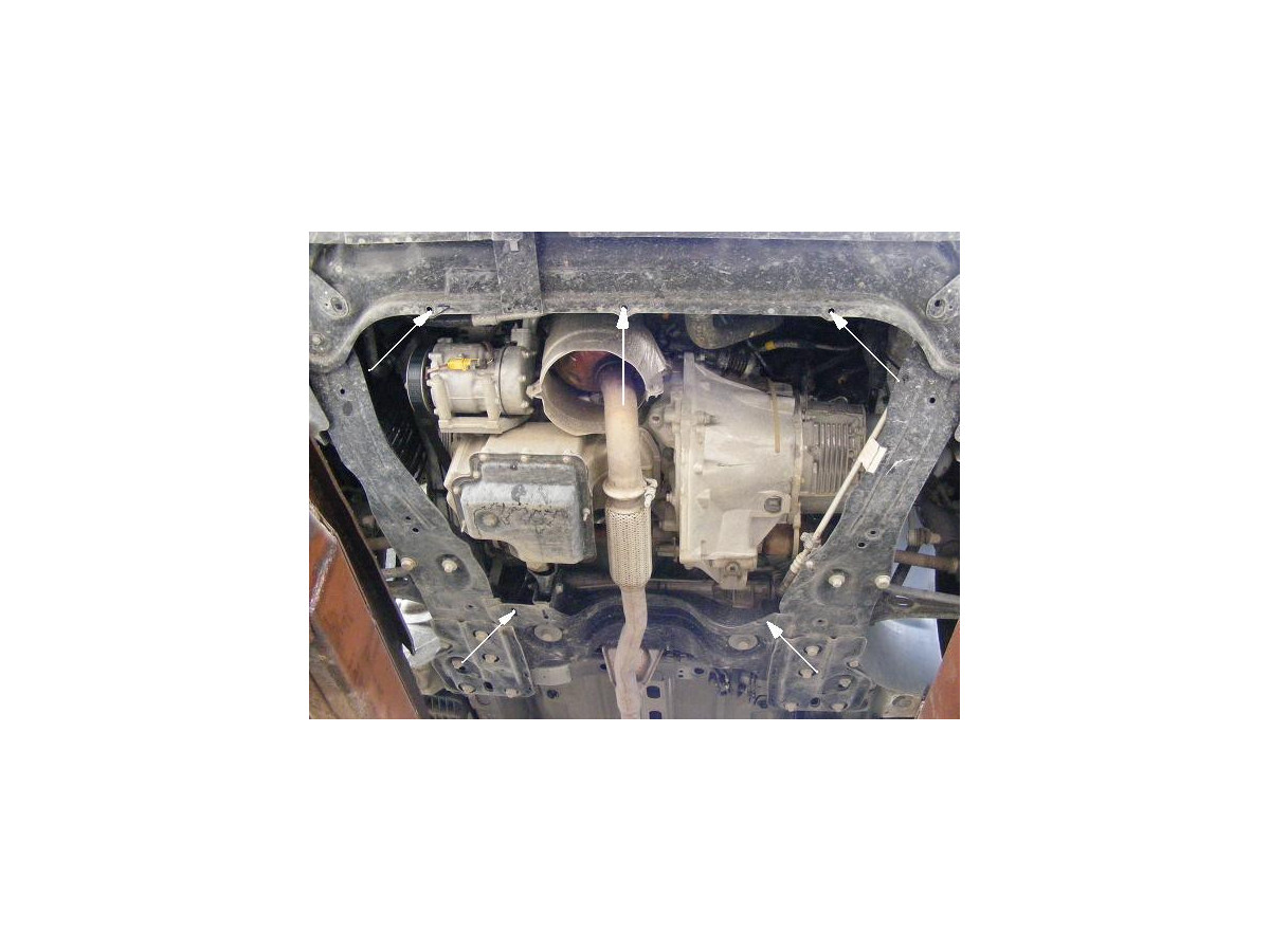 Der Stahl-Unterfahrschutz ist auf die originalen Befestigungspunkte abgestimmt und wird mit einem vollständigen Satz aus Blechplatten, Schrauben und Muttern befestigt.