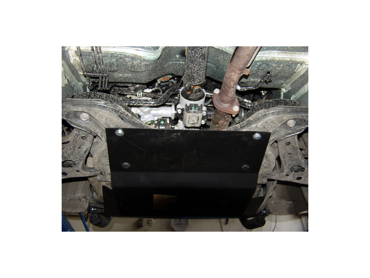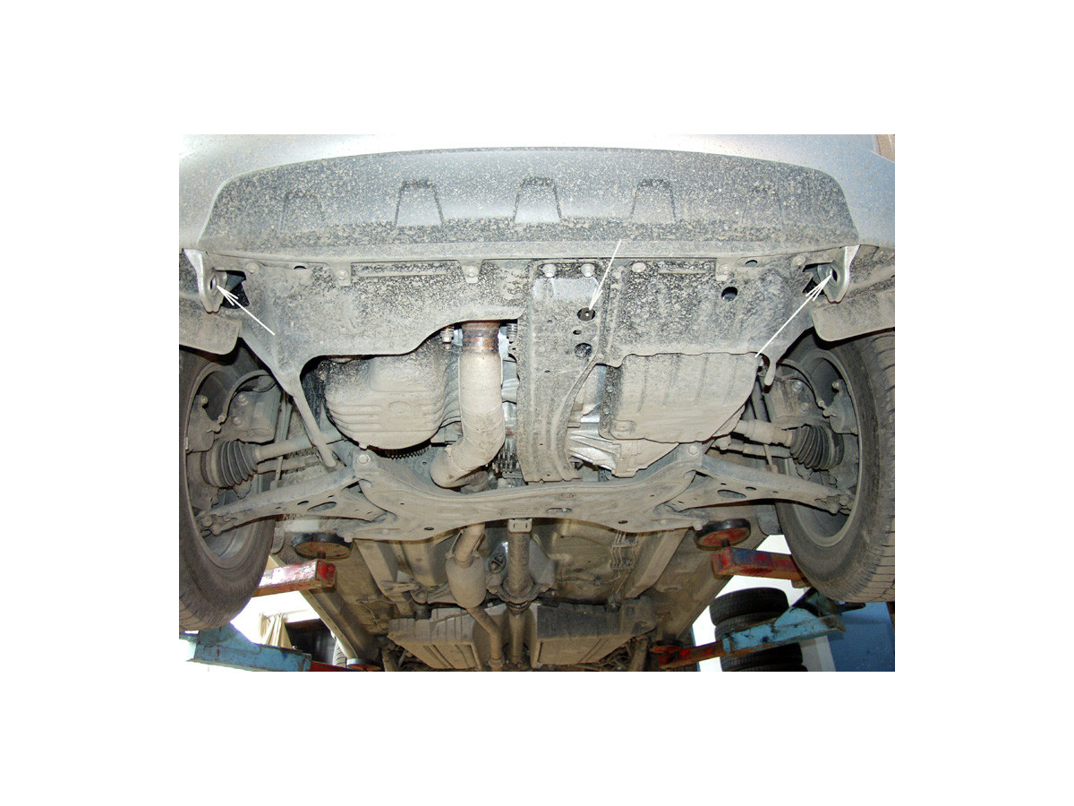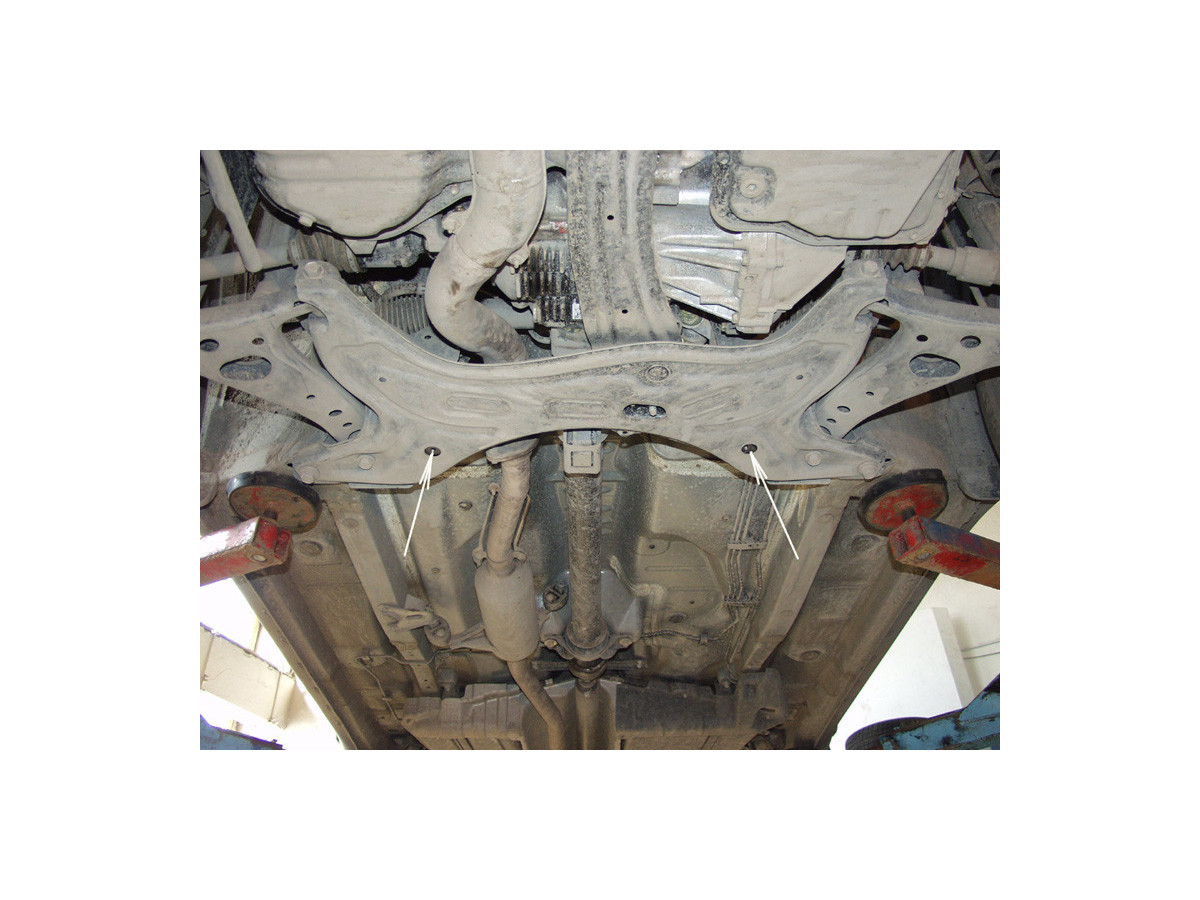 Der Stahl-Unterfahrschutz ist auf die originalen Befestigungspunkte abgestimmt und wird mit einem vollständigen Satz aus Blechplatten, Schrauben und Muttern befestigt.