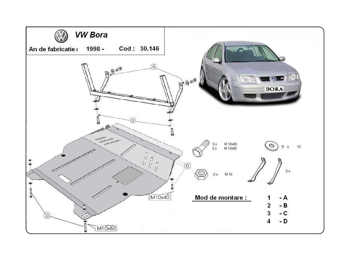 Der Stahl-Unterfahrschutz ist auf die originalen Befestigungspunkte abgestimmt und wird mit einem vollständigen Satz aus Blechplatten, Schrauben und Muttern befestigt.