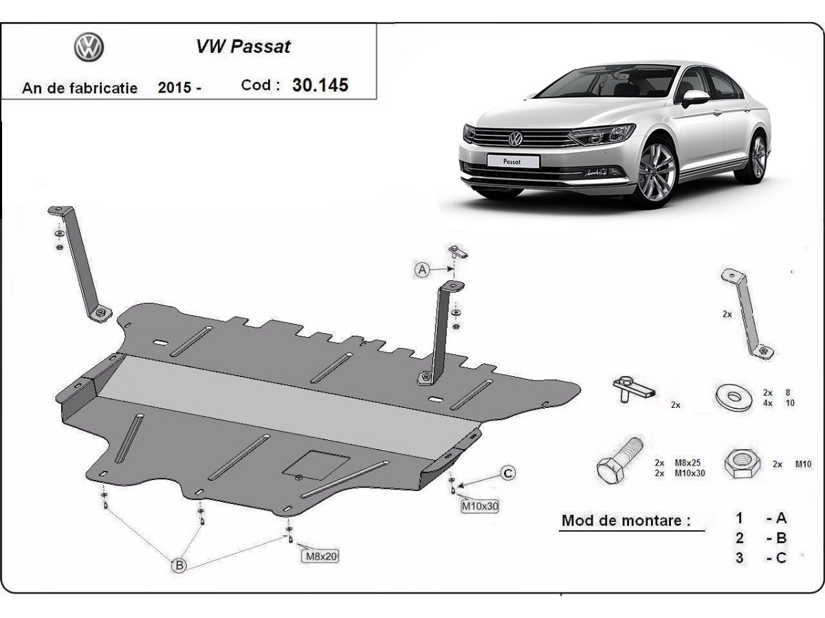Stahl Unterfahrschutz für Motor VW Passat Alltrack - Schaltgetriebe (2015-2024) EAN