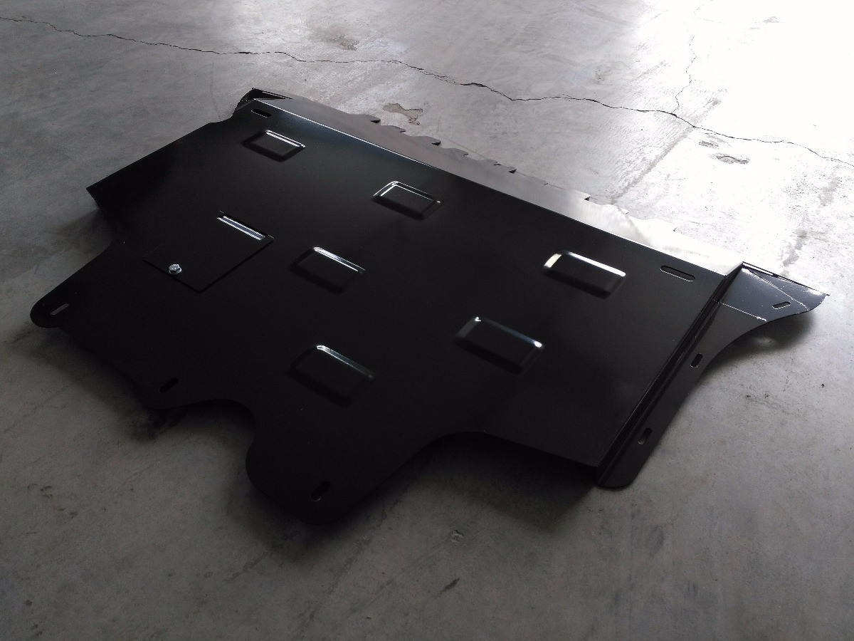 Hochwertige Stahlschutze für Motor und andere Komponenten, hergestellt mit modernsten Metallbearbeitungstechnologien.